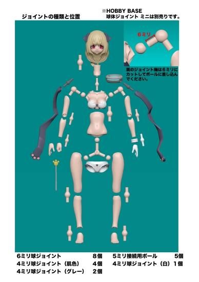(市販の「ホビーベース 球体ジョイント ミニ」フレッシュ、グレイの各1セットで組めます。)